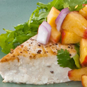 1. In a small mixing bowl, combine diced peaches, lime juice, diced red onion, cilantro, and 1 tsp. olive oil. Stir ingredients to combine. Taste salsa and adjust seasoning with salt and pepper. Keep refrigerated until use. 2. Preheat a large sauté pan over medium-high heat. Add 1 tsp. of olive oil to the sauté pan. Lightly season both sides of the swordfish steaks with salt and pepper. Carefully add the seasoned swordfish steaks to the sauté pan and cook for about 3 min. on each side or until swordfish is cooked throughout. Remove swordfish from pan and let drain on a paper towel. 3. In a medium-sized mixing bowl add the arugula, lemon juice and a drizzle of olive oil. Toss the arugula to coat and season lightly with salt and pepper. 4. To serve, place an even amount of arugula on each of the four plates. Place a swordfish steak on top of the arugula on each plate. Top the swordfish steaks with an even amount of peach salsa. Serve immediately.